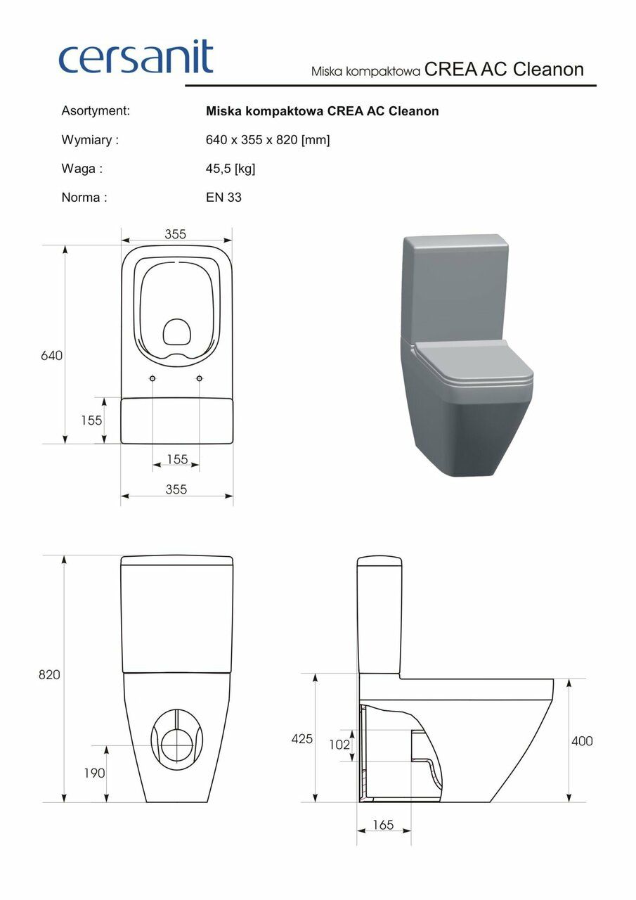 Бачок для унітаза Crea 011 (CCTZ1008107305) Cersanit | CCTZ1008107305