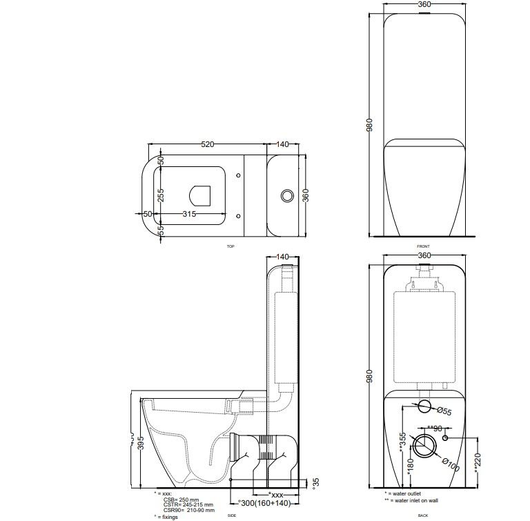 SHCM Бачок для моноблочного унітазу 36х14х98 код 9029