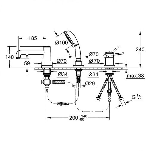 BAUCLASSIC змішувач для ванни, одноважільний на 3 отвори | 2511800A