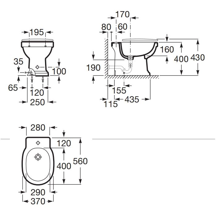 Біде підлогове Roca CARMEN 56*37см, з отвором під змішувач | A3570A4000