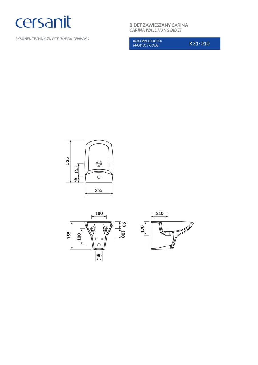 Біде підвісне Carina (CCBW1000150831), Cersanit | CCBW1000150831