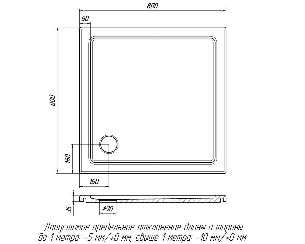 Душевой поддон «Лаура» 800 Білий А100 глянець | 137A100
