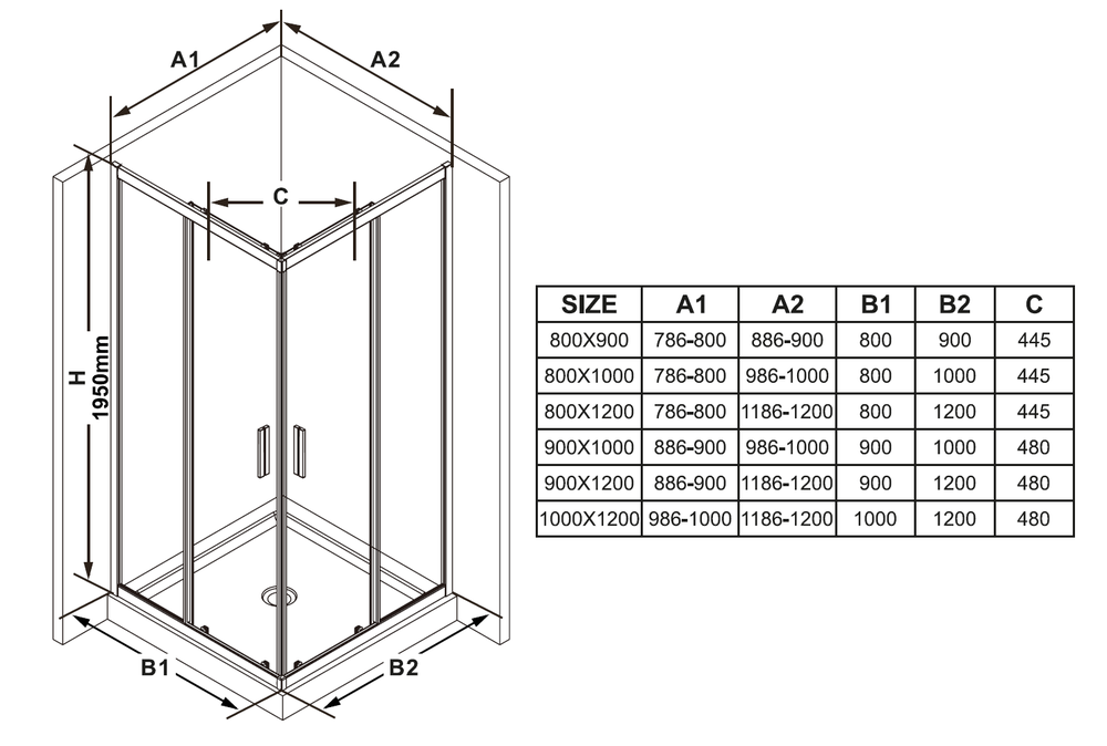 Для повної комплектації душової кабіни необхідно придбати два окремих вироби BLSRV2K відповідного розміру.