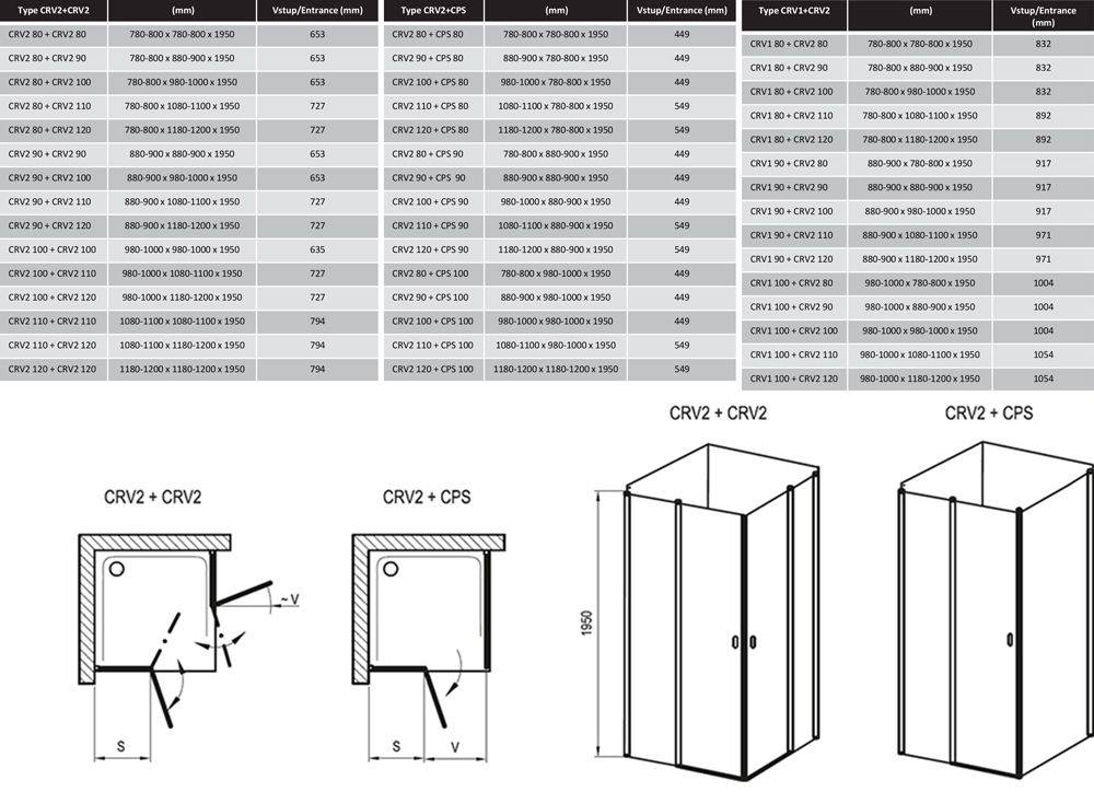 Один виріб CRV2 утворює половину душової кабіни. Для створення прямокутної душової кабіни необхідно замовити 2 шт CRV2.