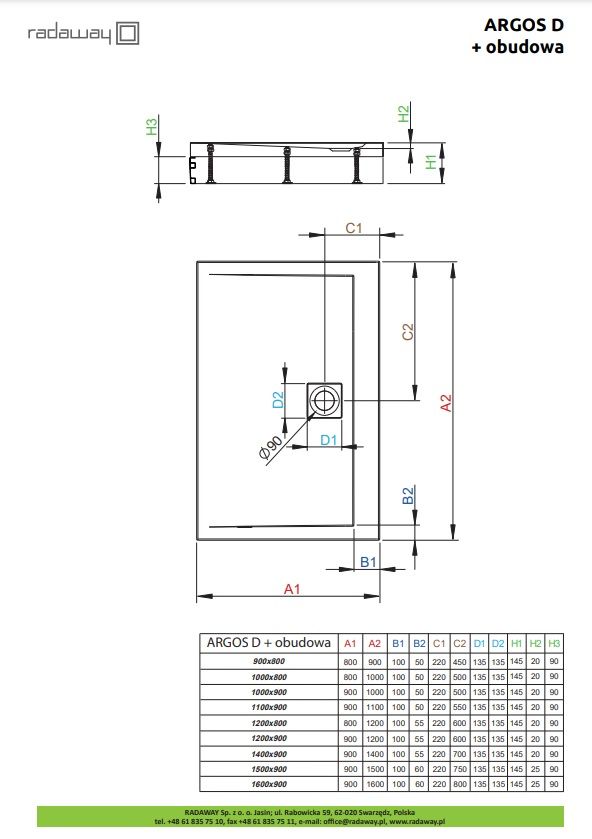 Душовий піддон Radaway Argos D на ніжках 900x800x55 білий | 4ADN89-02