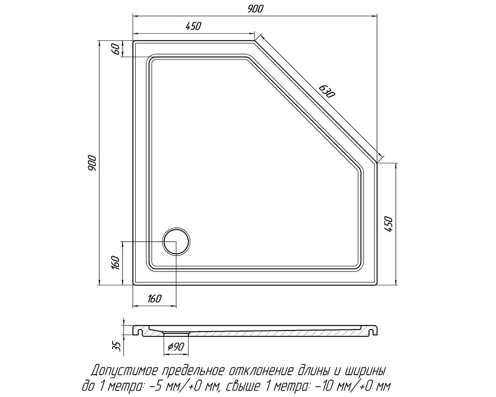 Душовий піддон «Белла» 900 Чорний А200 глянець | 132A200