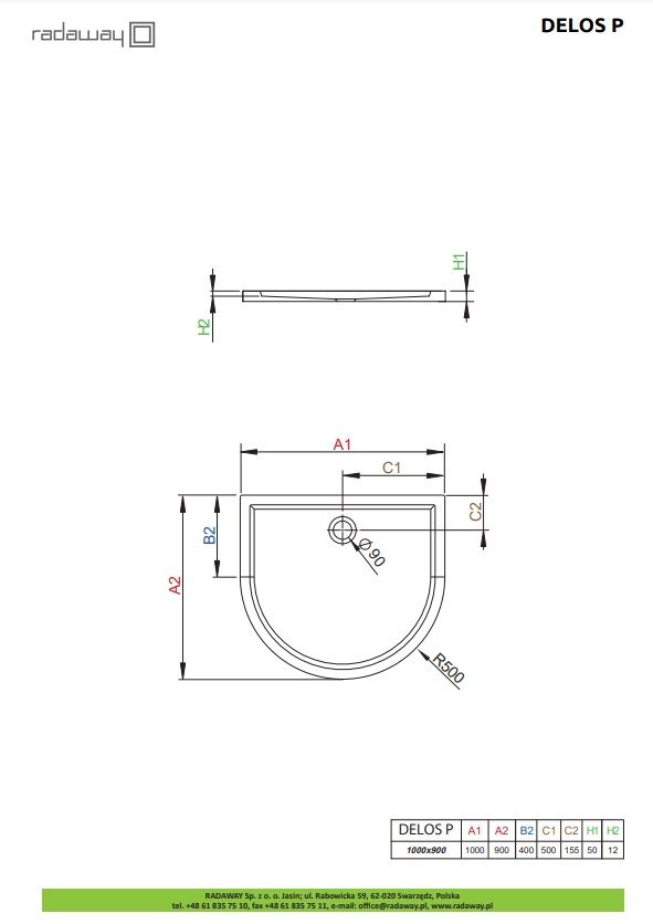 Душовий піддон Radaway Delos P 1000x900x50 білий | 4Z19035-03N
