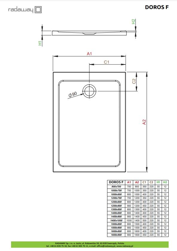 Душовий піддон Radaway Doros F 1000x800x55 білий | SDRF1080-01