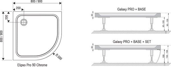 Душовий піддон ELIPSO PRO-80 CHROME, RAVAK | XA244401010