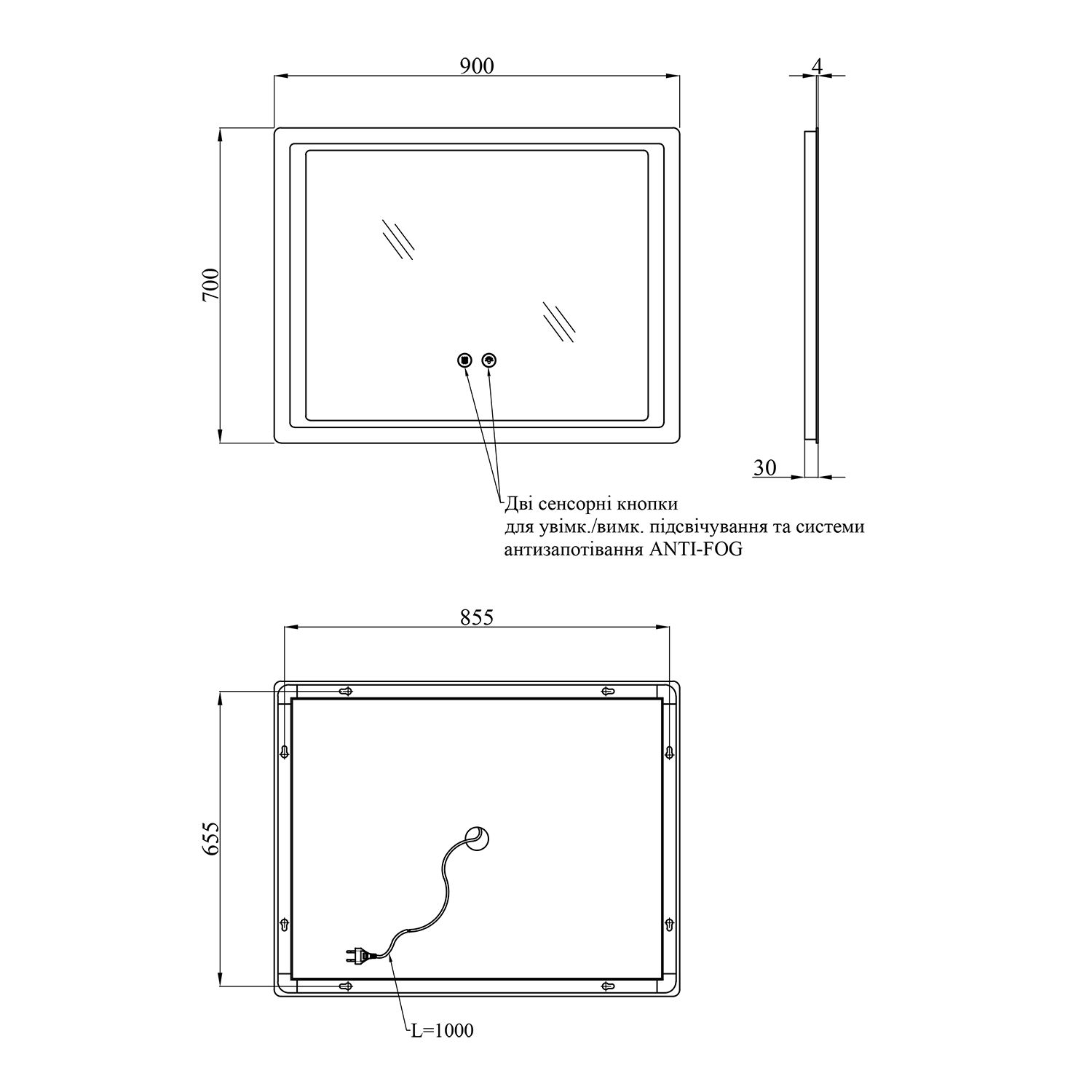 - ANTI-FOG – вбудована система захисту від запотівання, завдяки якій дзеркало залишається чистим навіть після гарячого душу.