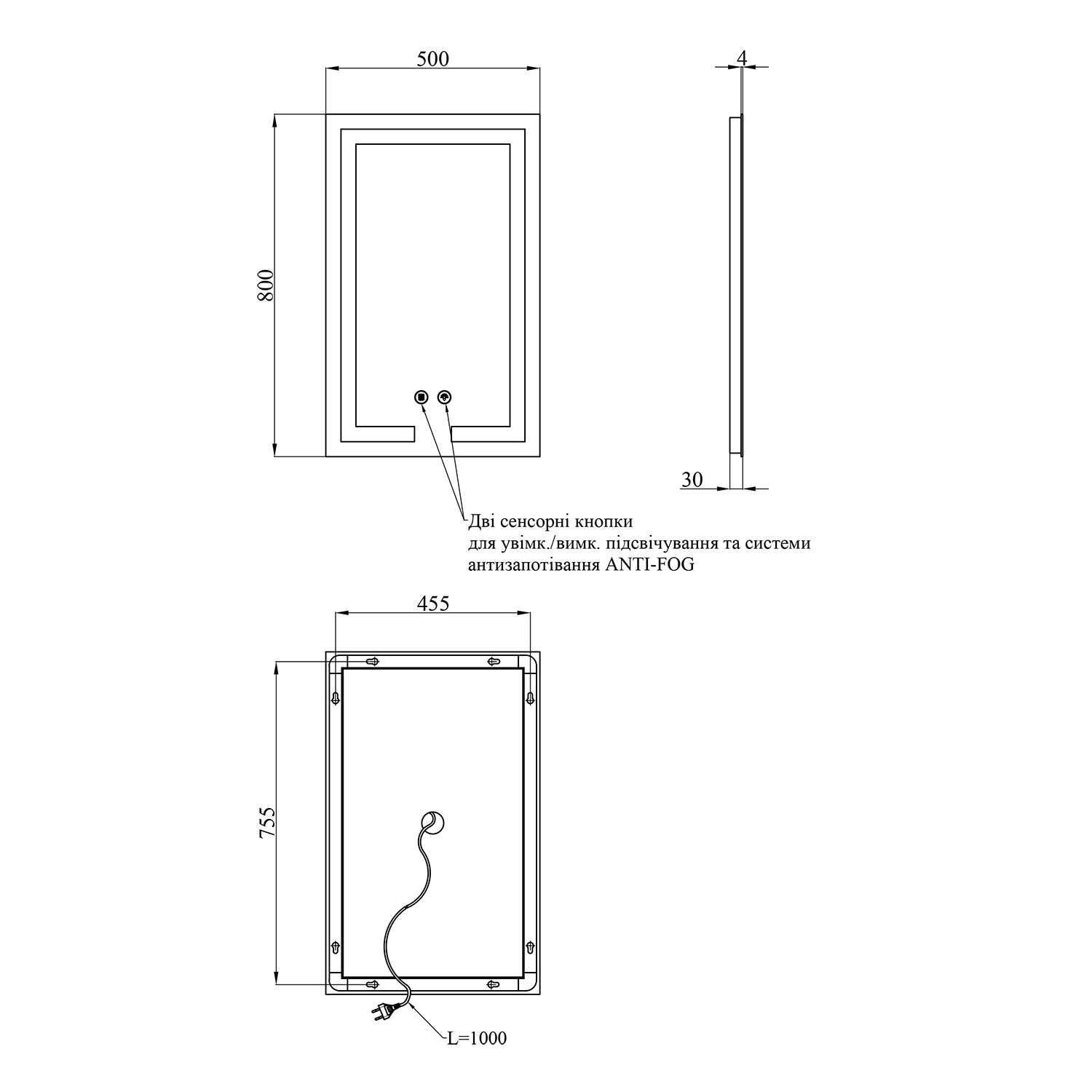 - ANTI-FOG – вбудована система захисту від запотівання, завдяки якій дзеркало залишається чистим навіть після гарячого душу.