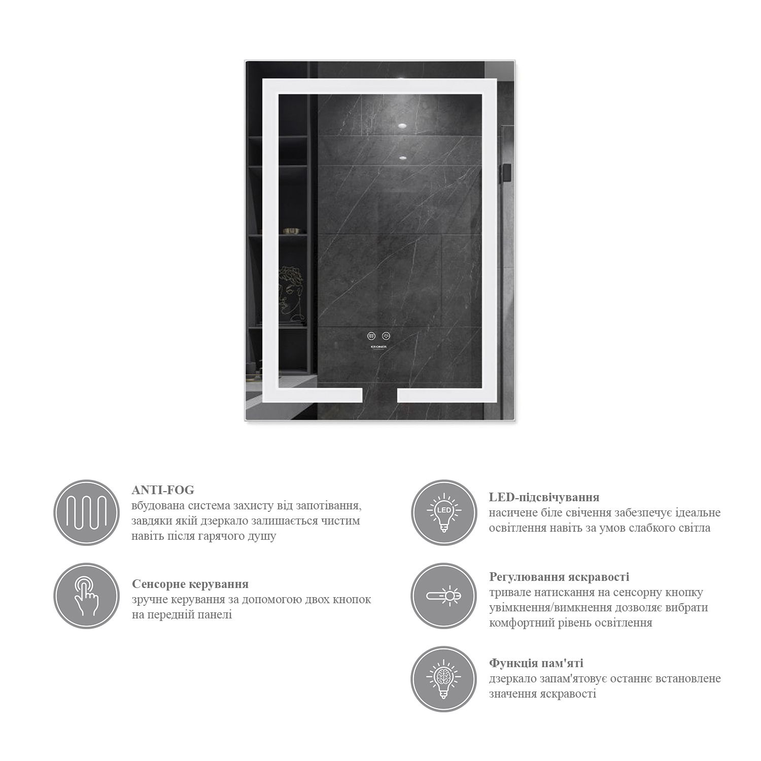 Дзеркало Kroner KRP Spiegel VR1 - 5080 з LED-підсвічуванням та антизапотіванням | CV030039