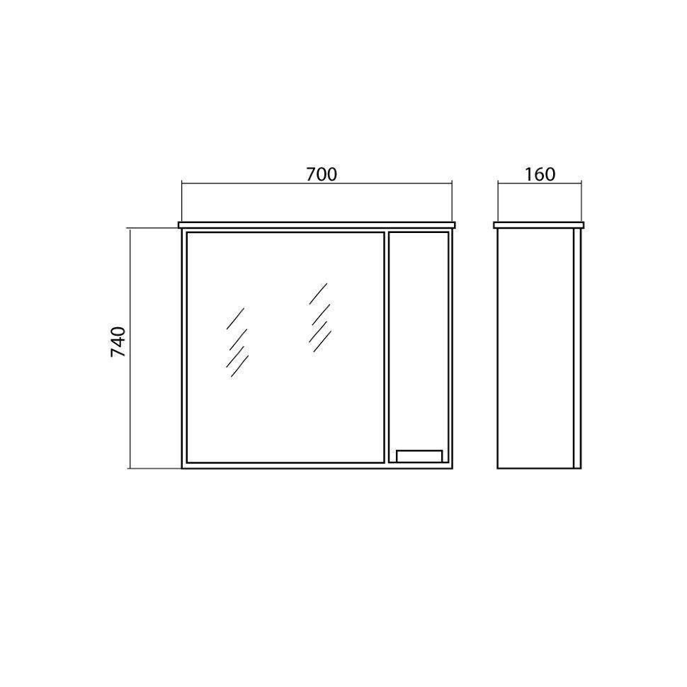 Дзеркало з шафкою Квадро 70 (R), Аква Родос | АР000001074