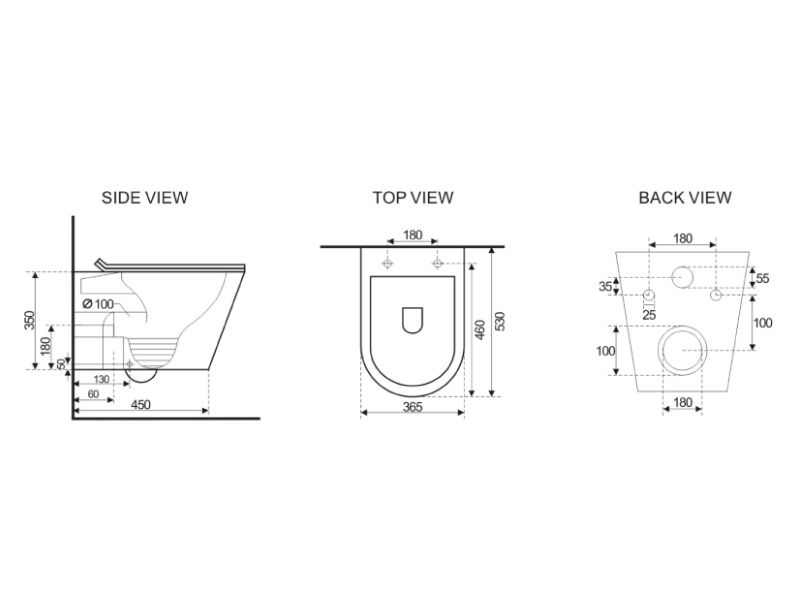 - чаша унітазу з горизонтальним випуском;
