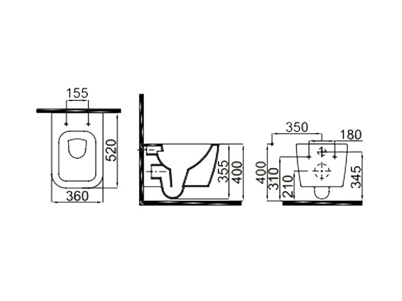 Форма унітазу:Прямокутна