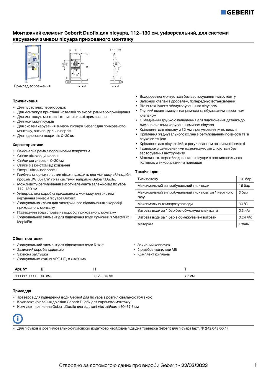 Інсталяція для пісуара універсальна Duofix 111.689.00.1 Geberit | 111.689.00.1