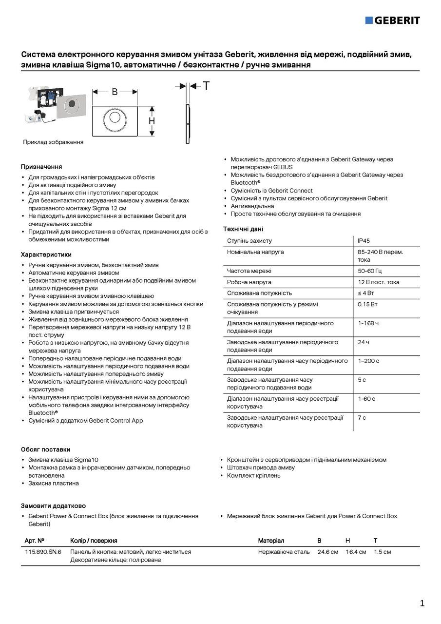 115.890.SN.6 С-ма елек-го керування змивом унітазу від мережі подві змив зм клавіша Sigma10 автомат безконт ручний змив код 2022