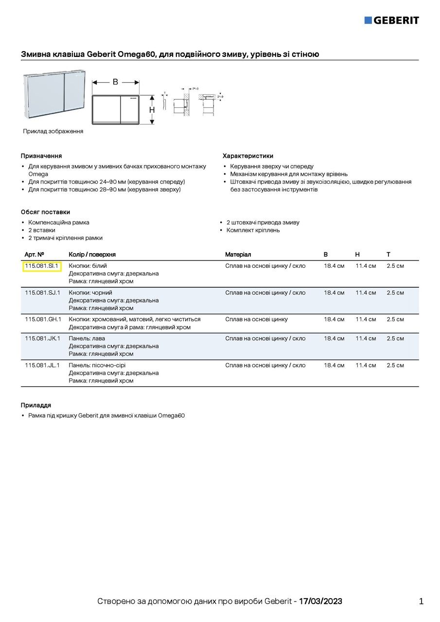 Кнопка зливу Omega 60 115.081.SI.1 білий Geberit | 115.081.SI.1