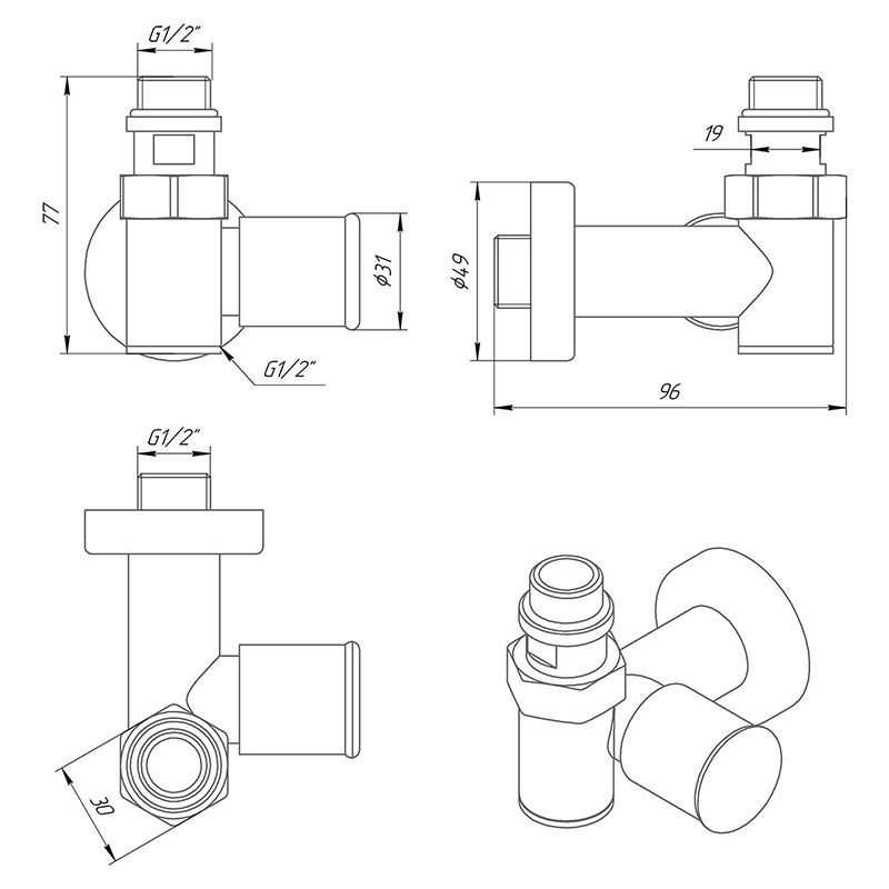 Кран під ТЕН 1/2" - 1/2" (LX-2044) | 71401063