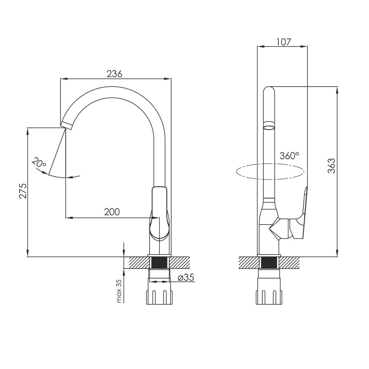 KUCERA змішувач для кухні, хром, 35 мм | 55105