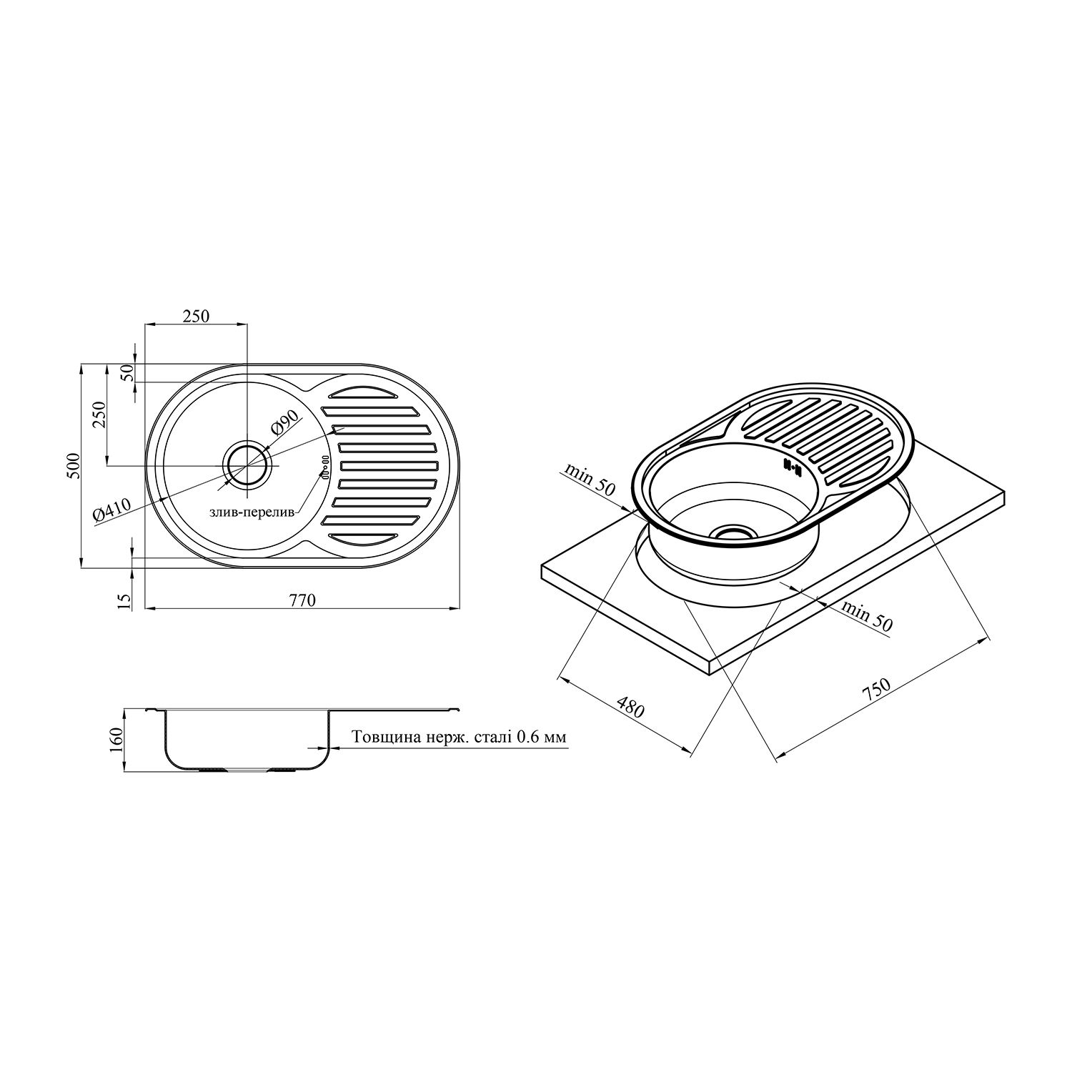 Кухонна мийка Kroner KRP Dekor - 7750 (0.6 мм) | CV022783