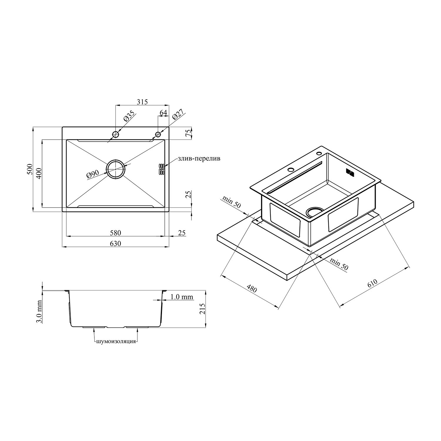 Шумоізоляція та антиконденсат: Мийка повністю покрита шумоізоляцією та антиконденсатом, що знижує шум при використанні та запобігає утворенню конденсату, захищаючи при цьому ваші меблі та кухонні шафи.