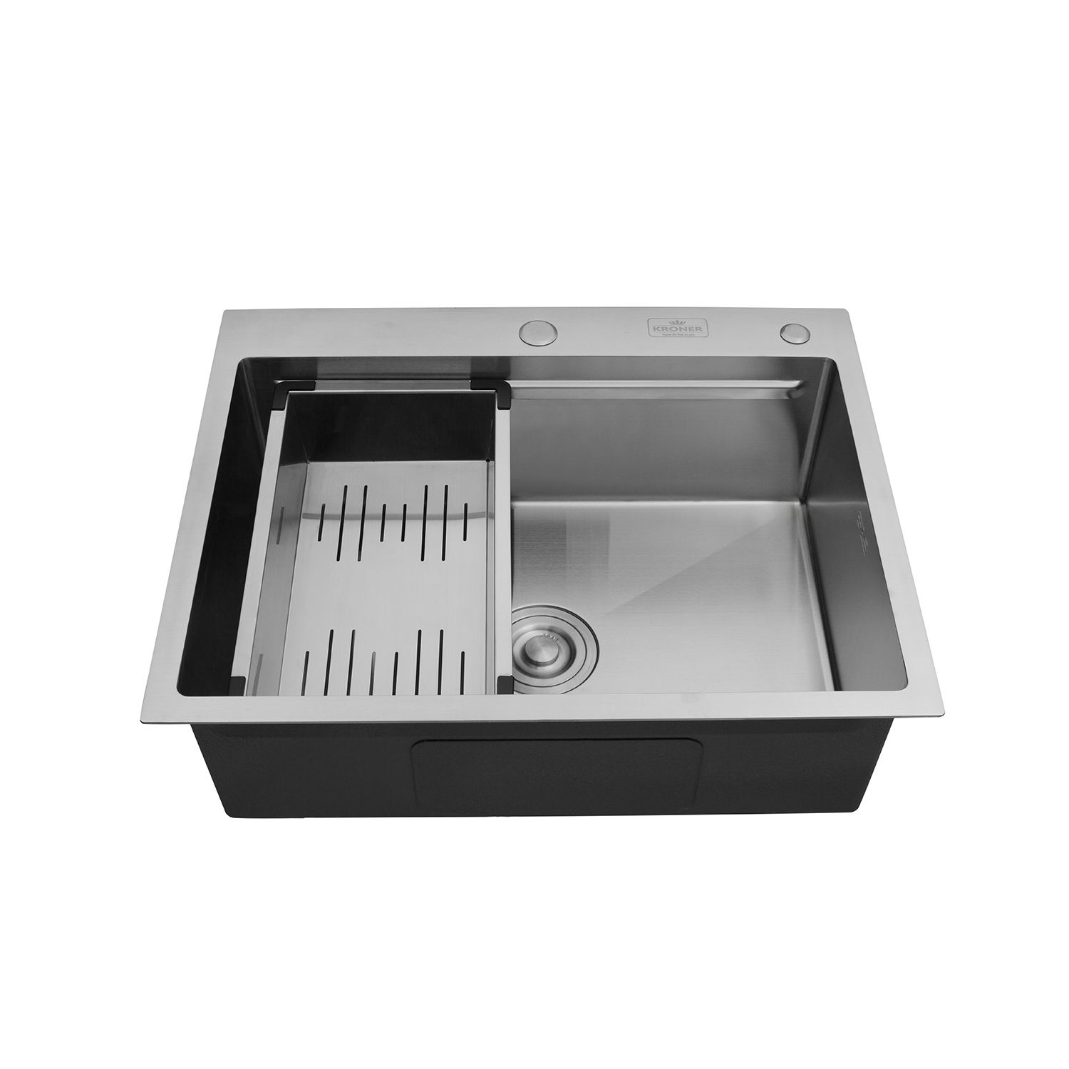 Кухонна мийка Kroner KRP Gebürstet - 6350HM (3.0/1.0 мм) - це високоякісне рішення для вашої кухні, призначене для полегшення повсякденних завдань при приготуванні їжі та збиранні. Ця мийка пропонує ряд зручних характеристик та довговічних матеріалів, які зроблять вашу кухню більш функціональною та естетичною.