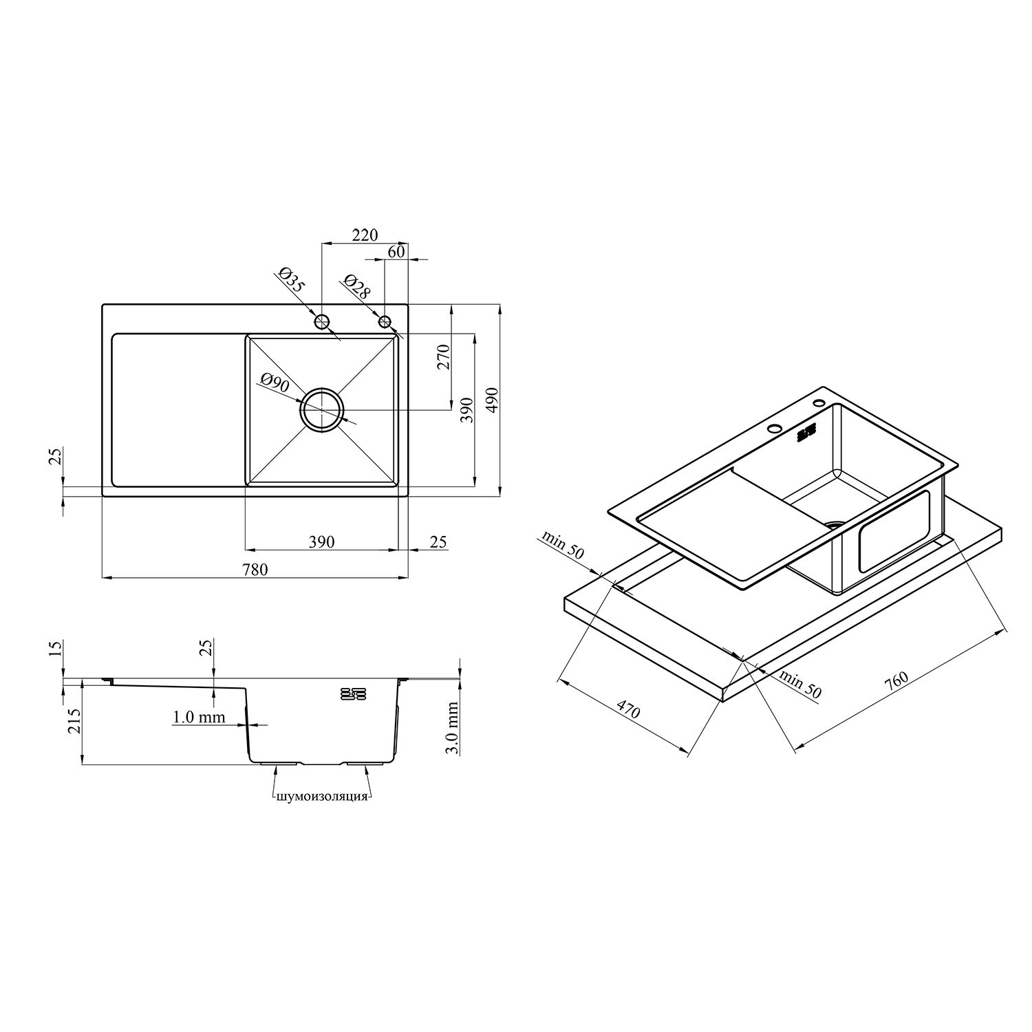 Кухонна мийка Kroner KRP Gebürstet - 7849RHM (3.0/1.0 мм) | CV025276