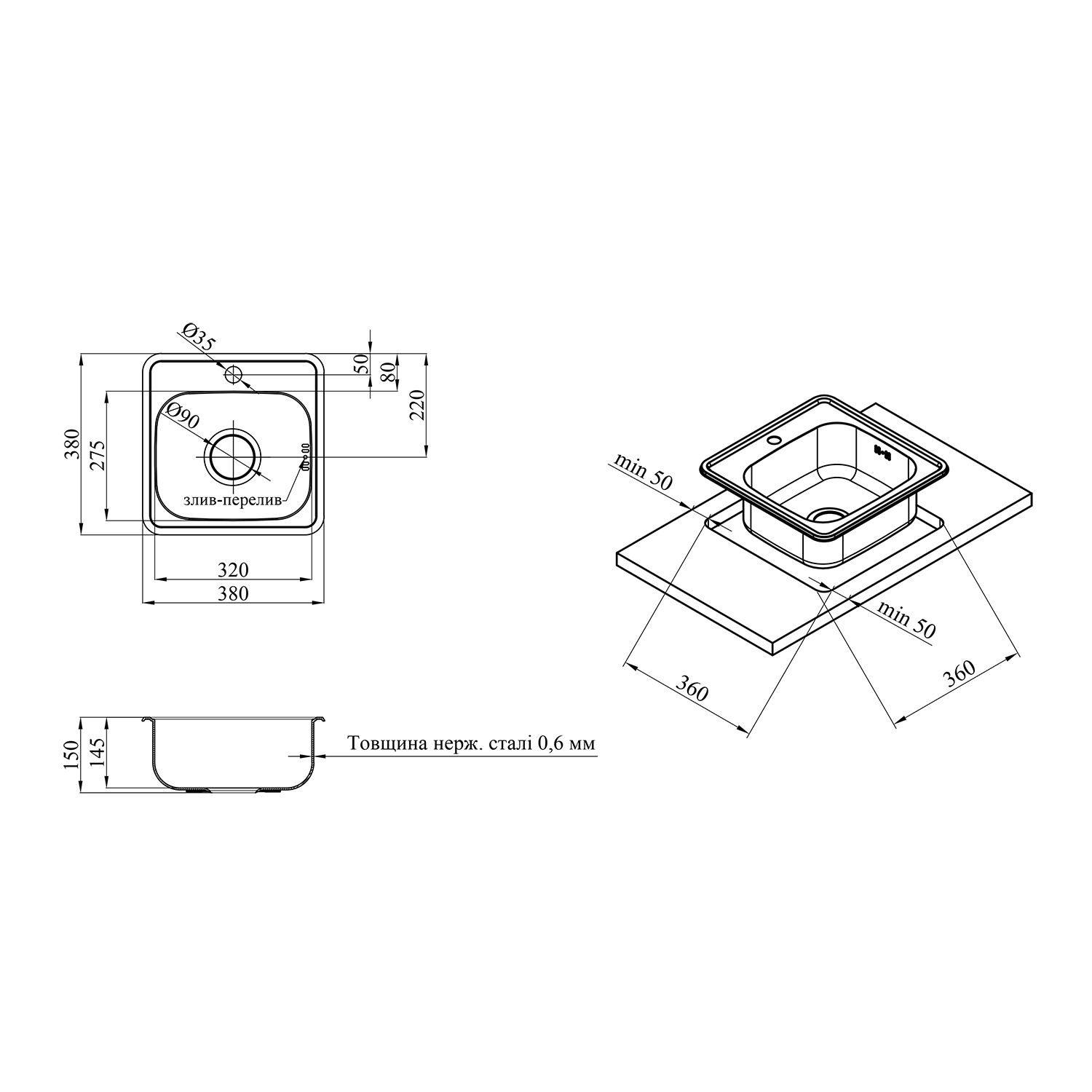 Кухонна мийка Kroner KRP Satin - 3838 (0,6 мм) - ідеальне рішення для сучасної кухні. Завдяки своїй квадратній формі і стильному дизайну вона впишеться в будь-який інтер'єр. Врізний спосіб монтажу дозволяє безпроблемно встановити мийку. Виготовлена з високоякісної нержавіючої сталі, що забезпечує довгий термін служби і легку очистку. Функціональна, надійна та естетично приваблива - мийка від Kroner стане незамінним помічником у приготуваннях та прикрасою вашої кухні.