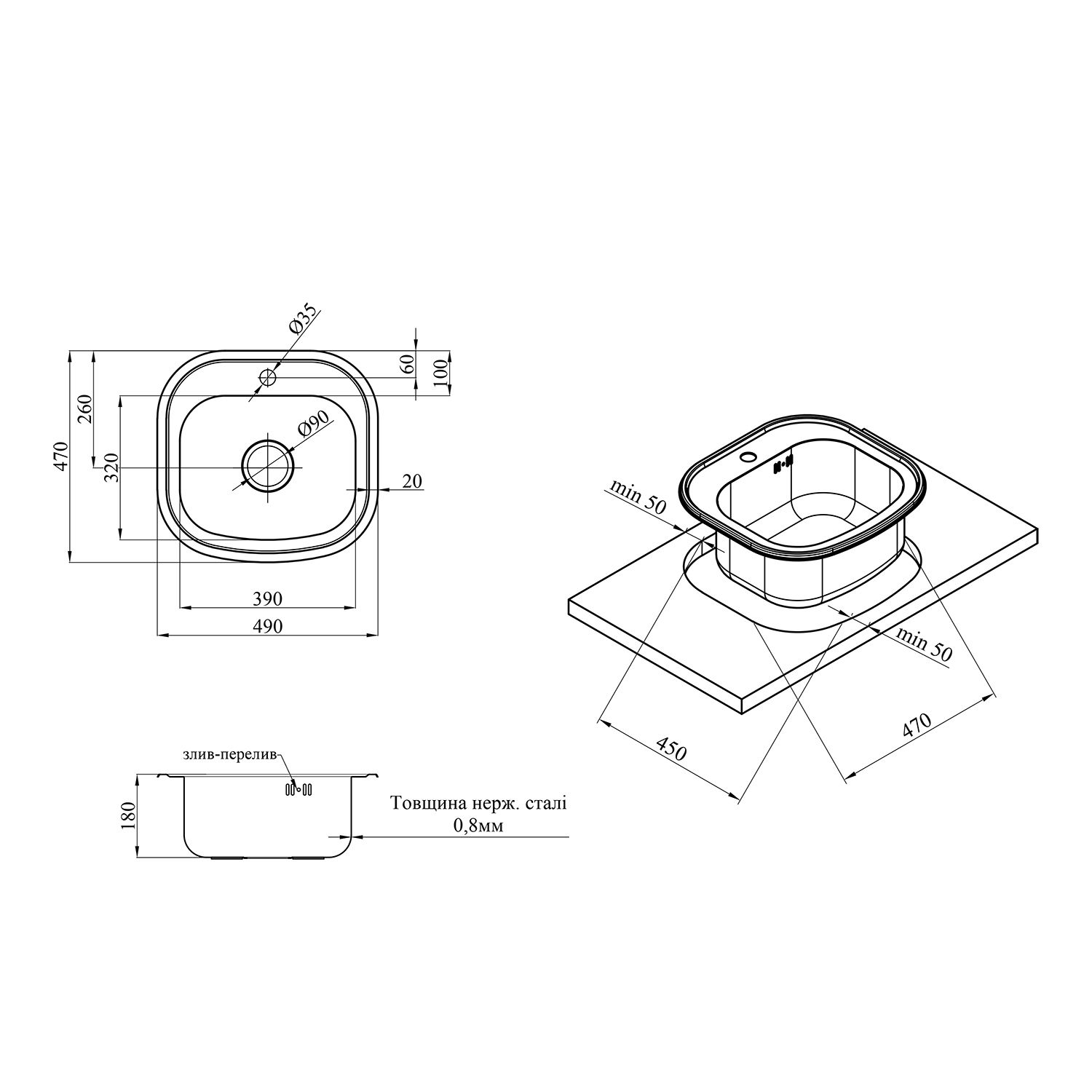 Отвір під перелив:З переливом
