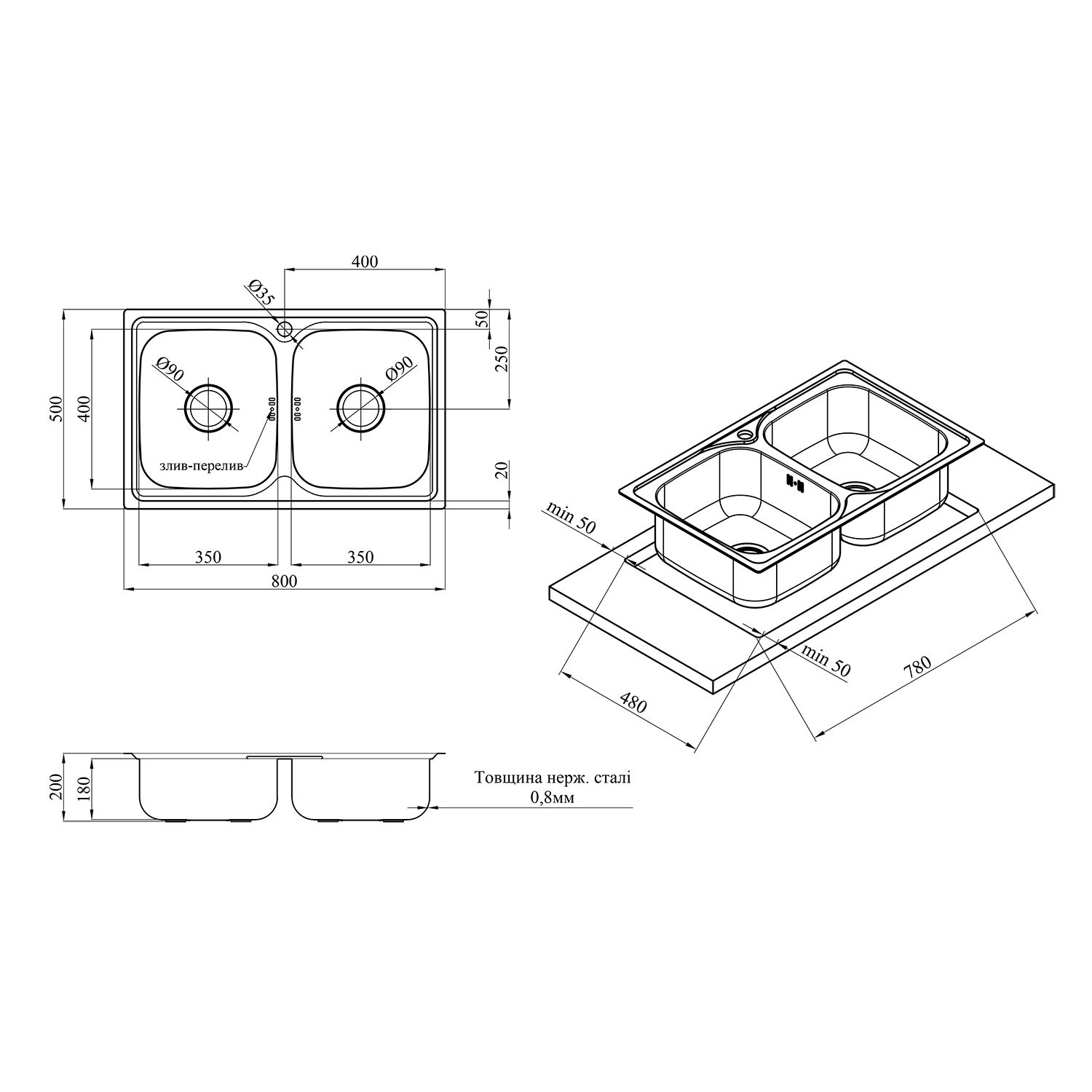 Кухонна мийка Kroner KRP Satin - 7948Z (0.8 мм) | CV025445