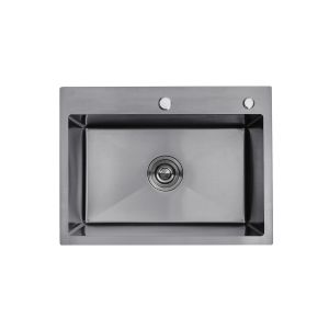 Кухонна мийка Kroner KRP Schwarze - 5843HM PVD (3.0/1.0 мм) - ідеальне рішення для сучасної кухні. Завдяки своїй прямокутній формі та стильному дизайну вона впишеться в будь-який інтер'єр. Інтегрований спосіб монтажу дозволяє безпроблемно встановити мийку. Виготовлена з високоякісної нержавіючої сталі. Практичне доповнення - вбудований отвір для дозатора миючого засобу. Функціональна, надійна та естетично приваблива - мийка від Kroner стане незамінним помічником у приготуваннях та прикрасою вашої кухні.