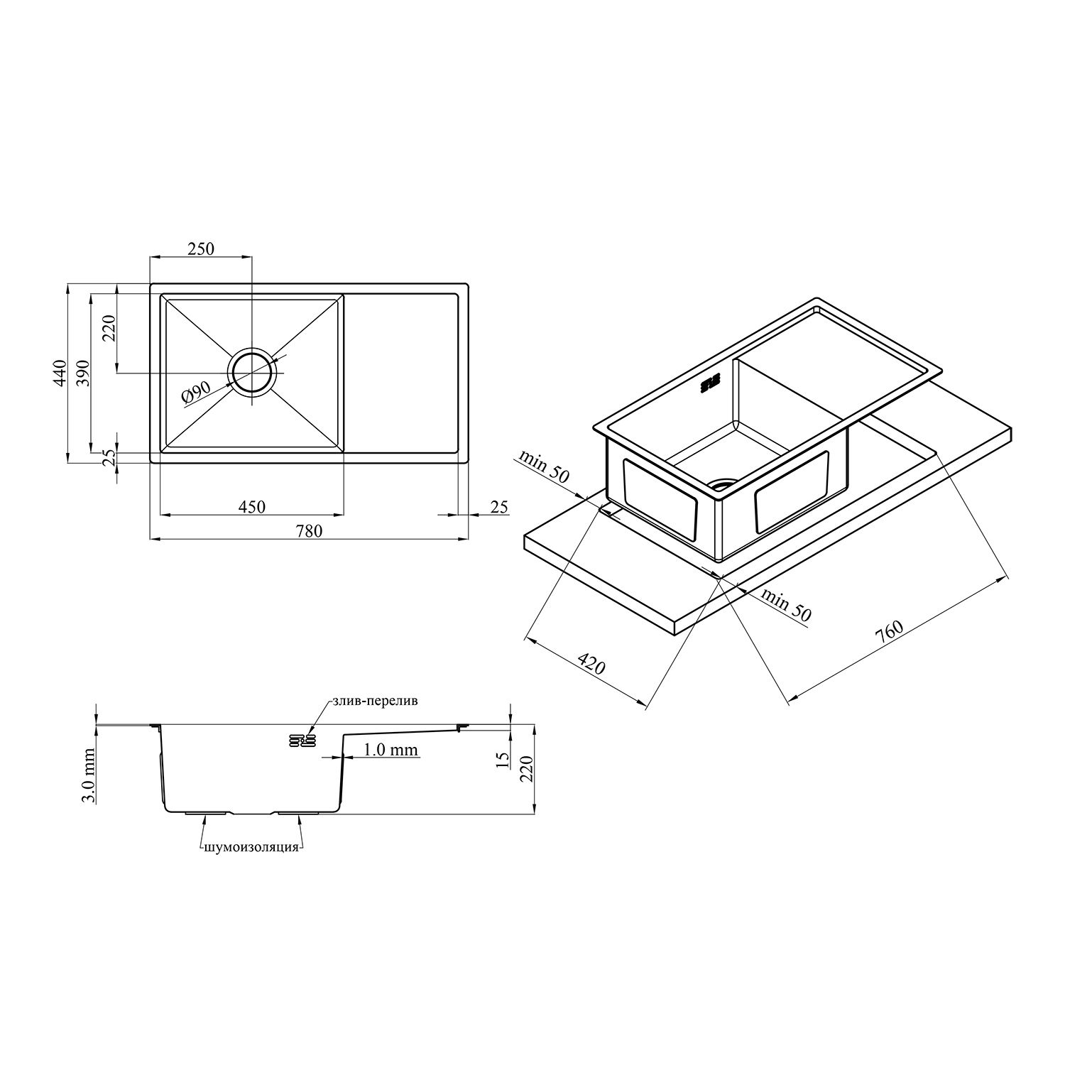 Діаметр зливного отвору, мм:90