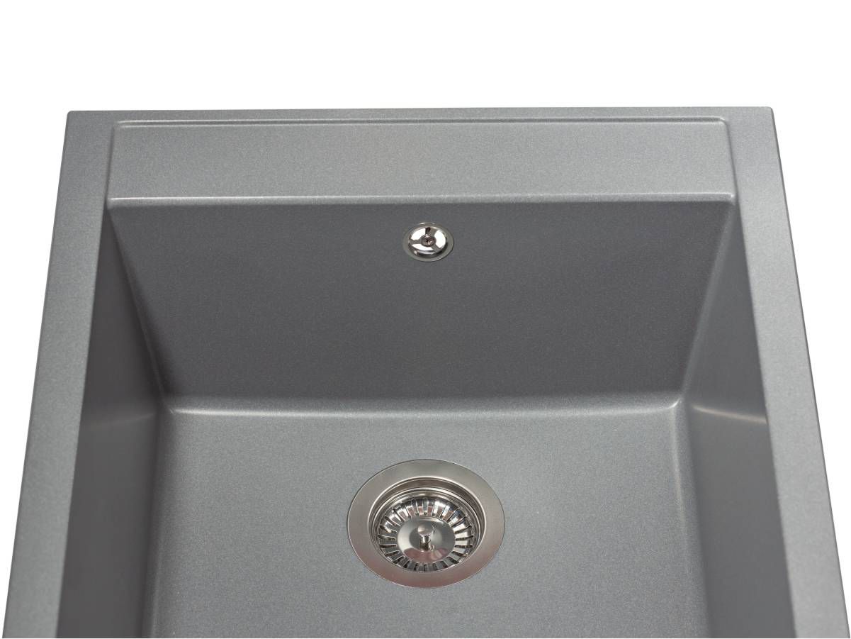 Кухонна мийка BODRUM 510 сіра має однорідну текстуру та колір. Вона не вбирає запахи, відштовхує жир та забруднення, а також не змінює свого кольору у процесі використання.