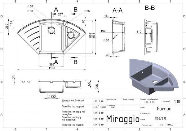 Всі кухонні мийки Miraggio комплектуються сифонами та кріпленнями для стільниці. На усі моделі діє гарантія 10 років від виробника.