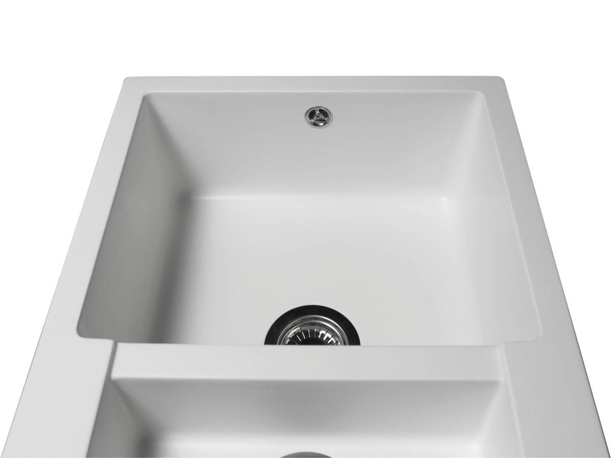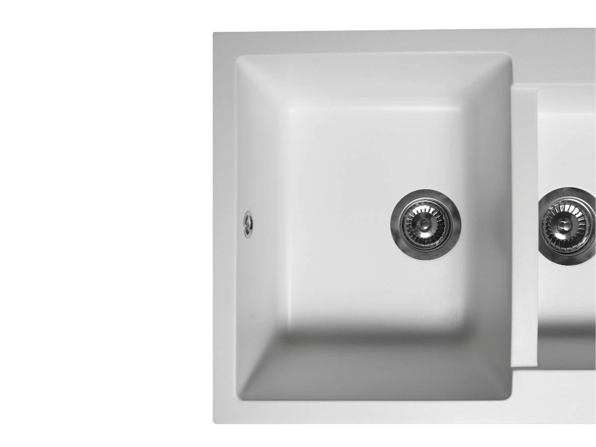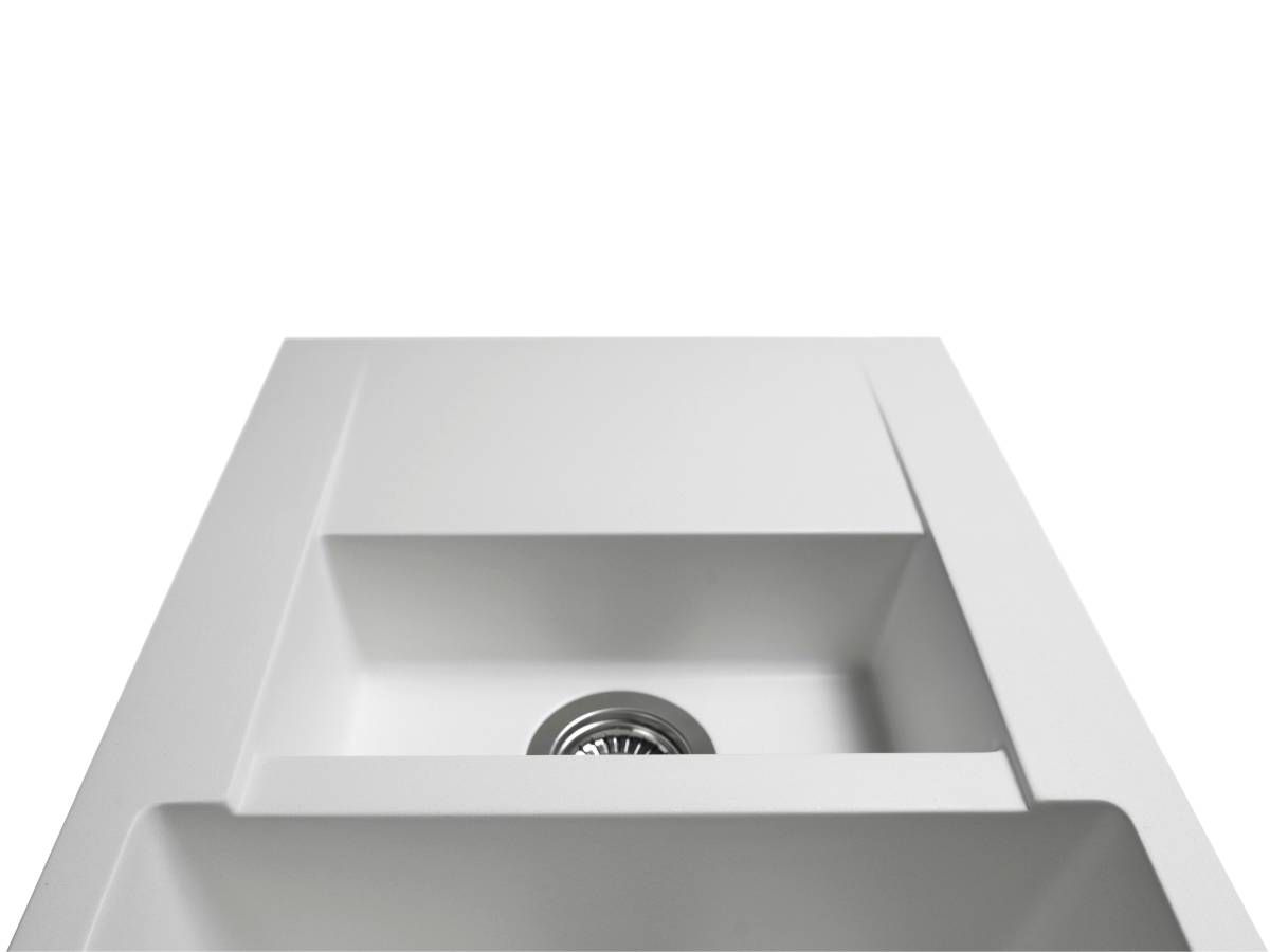 Кухонна мийка LAPAS біла має однорідну текстуру та колір. Вона не вбирає запахи, відштовхує жир та забруднення, а також не змінює свого кольору у процесі використання.