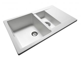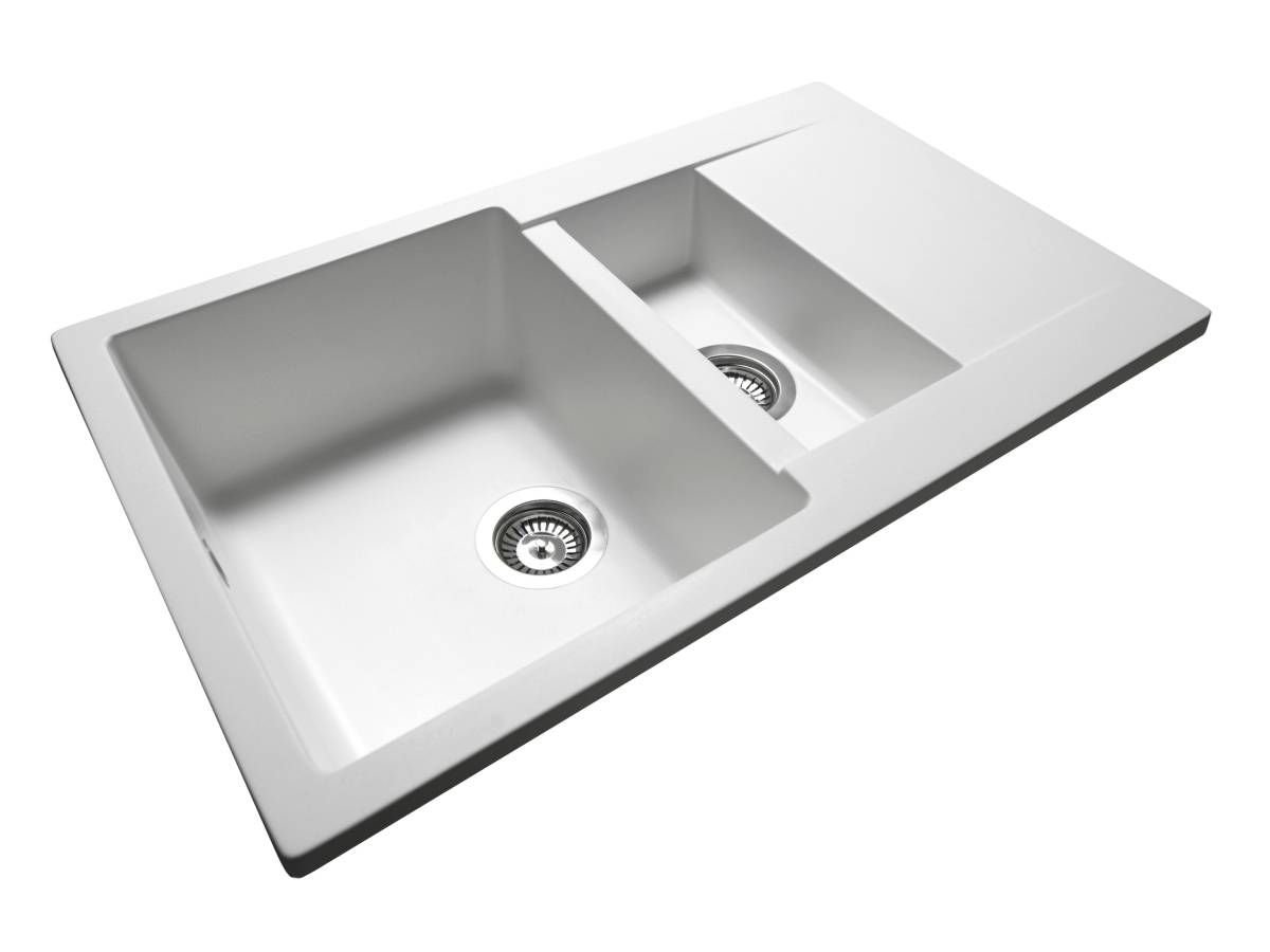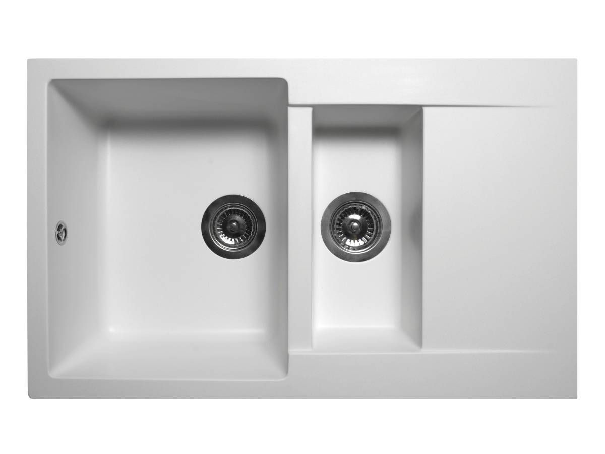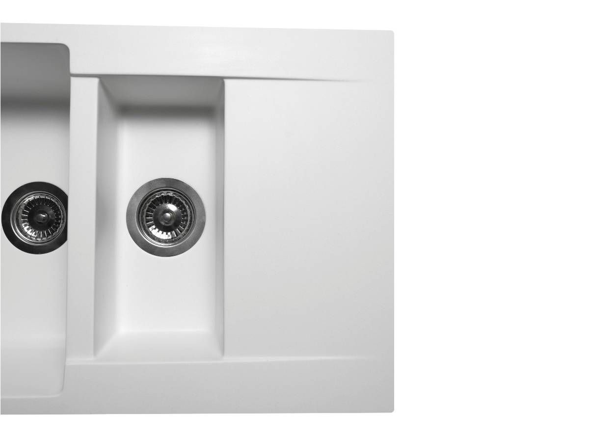 Кухонна мийка LAPAS біла має однорідну текстуру та колір. Вона не вбирає запахи, відштовхує жир та забруднення, а також не змінює свого кольору у процесі використання.