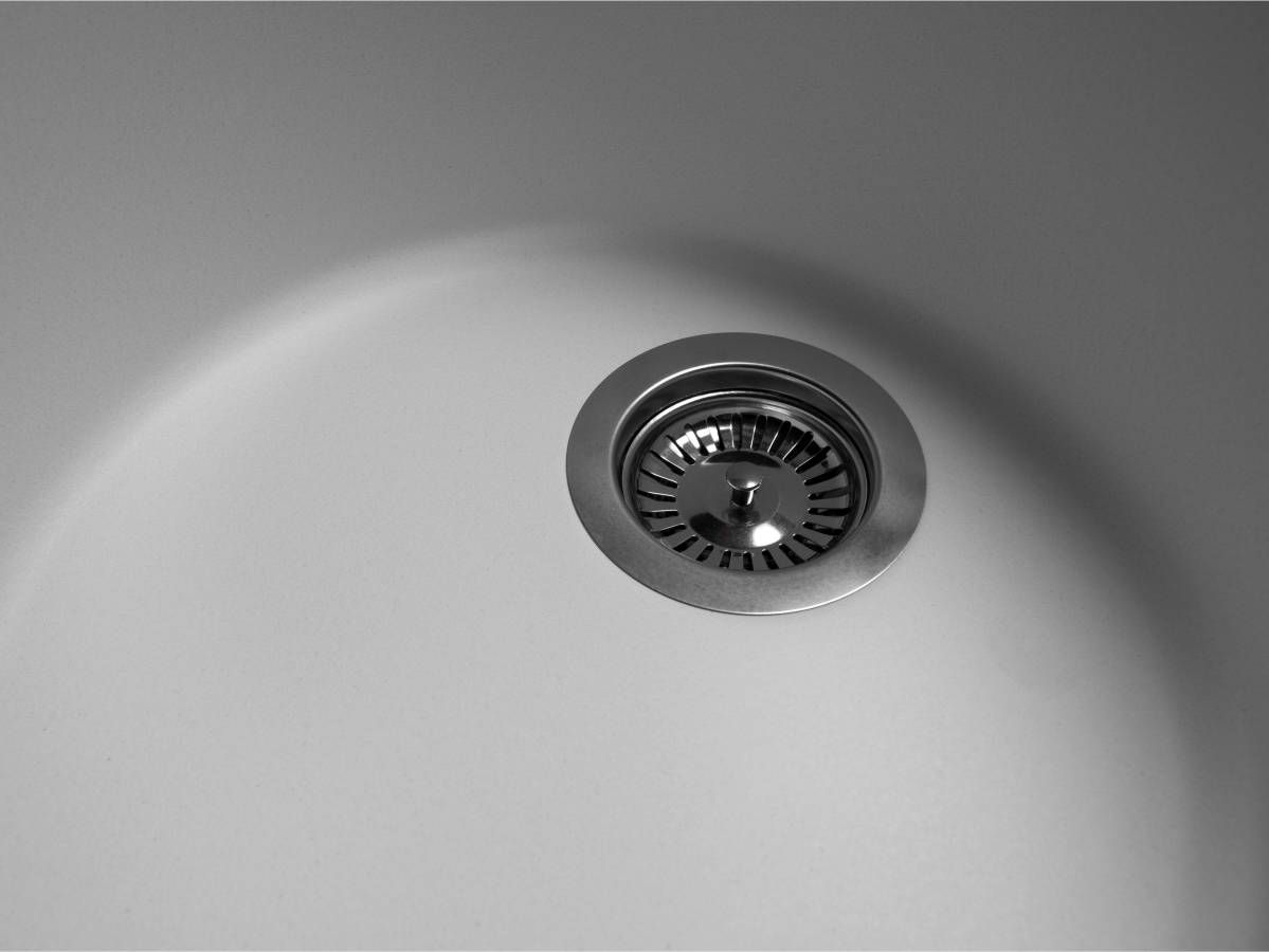 Кухонна мийка TULUZA біла має однорідну текстуру та колір. Вона не вбирає запахи, відштовхує жир та забруднення, а також не змінює свого кольору у процесі використання.