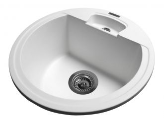 Кухонна мийка VALENCIA біла на 80% складається з кварцового піску та на 20% з поліефірної смоли, яка забезпечує міцність цього виробу. Кухонна мийка витримує перепади температур від -70 до +70 °C та не піддається впливу агресивних побутових барвників.