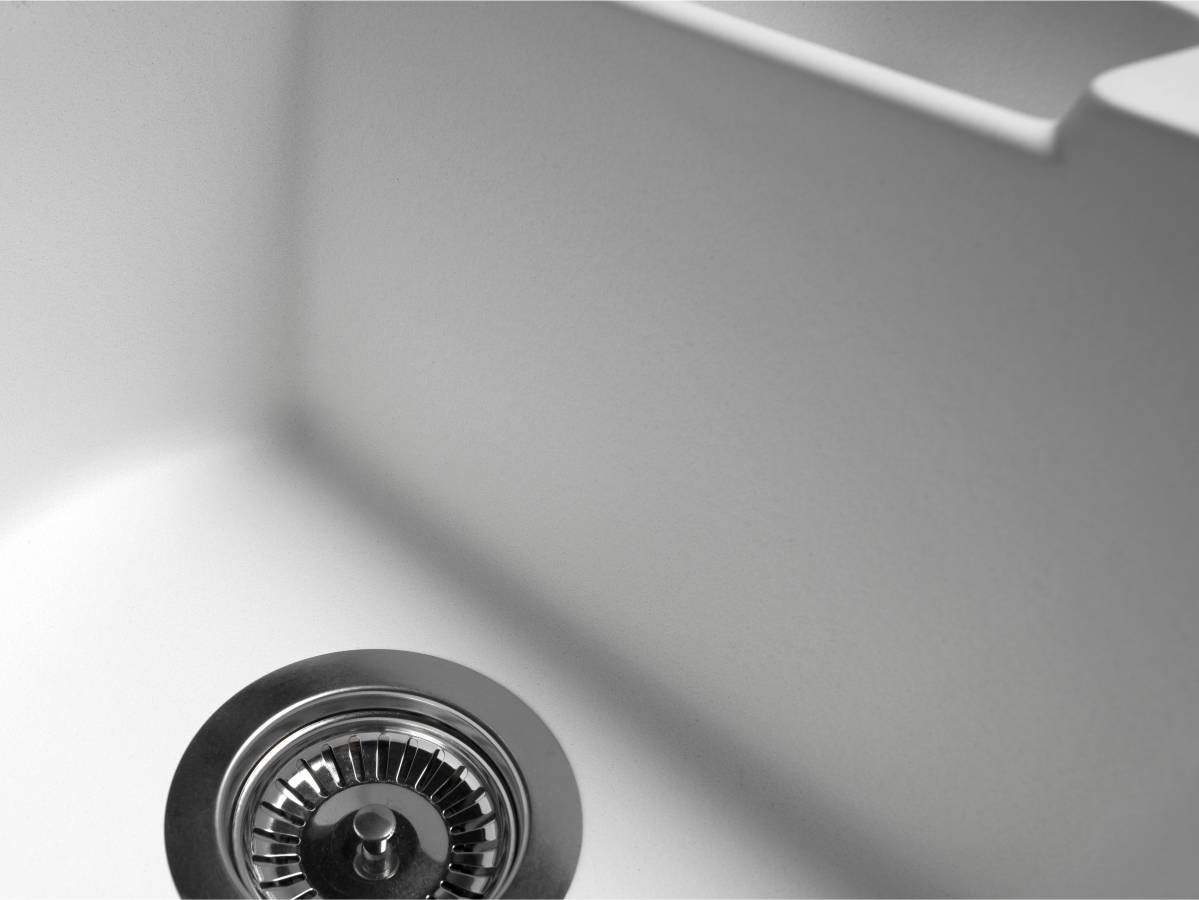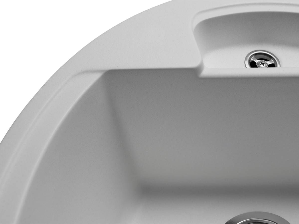 Кухонна мийка VALENCIA біла має однорідну текстуру та колір. Вона не вбирає запахи, відштовхує жир та забруднення, а також не змінює свого кольору у процесі використання.