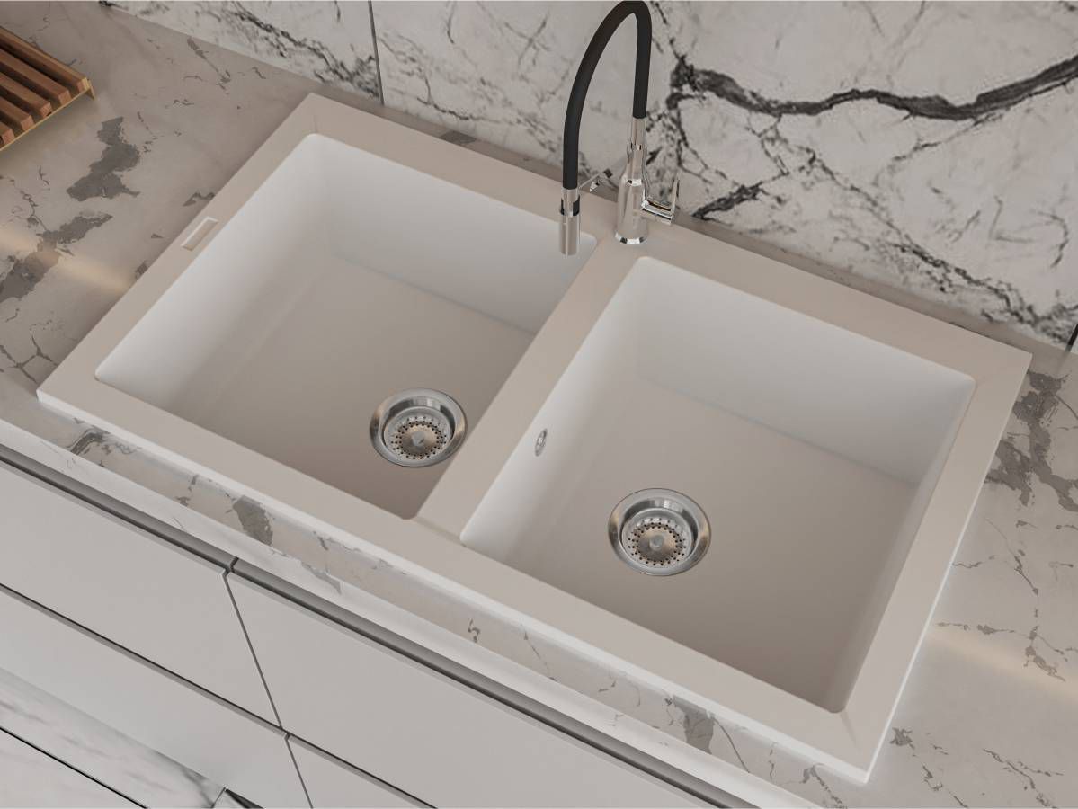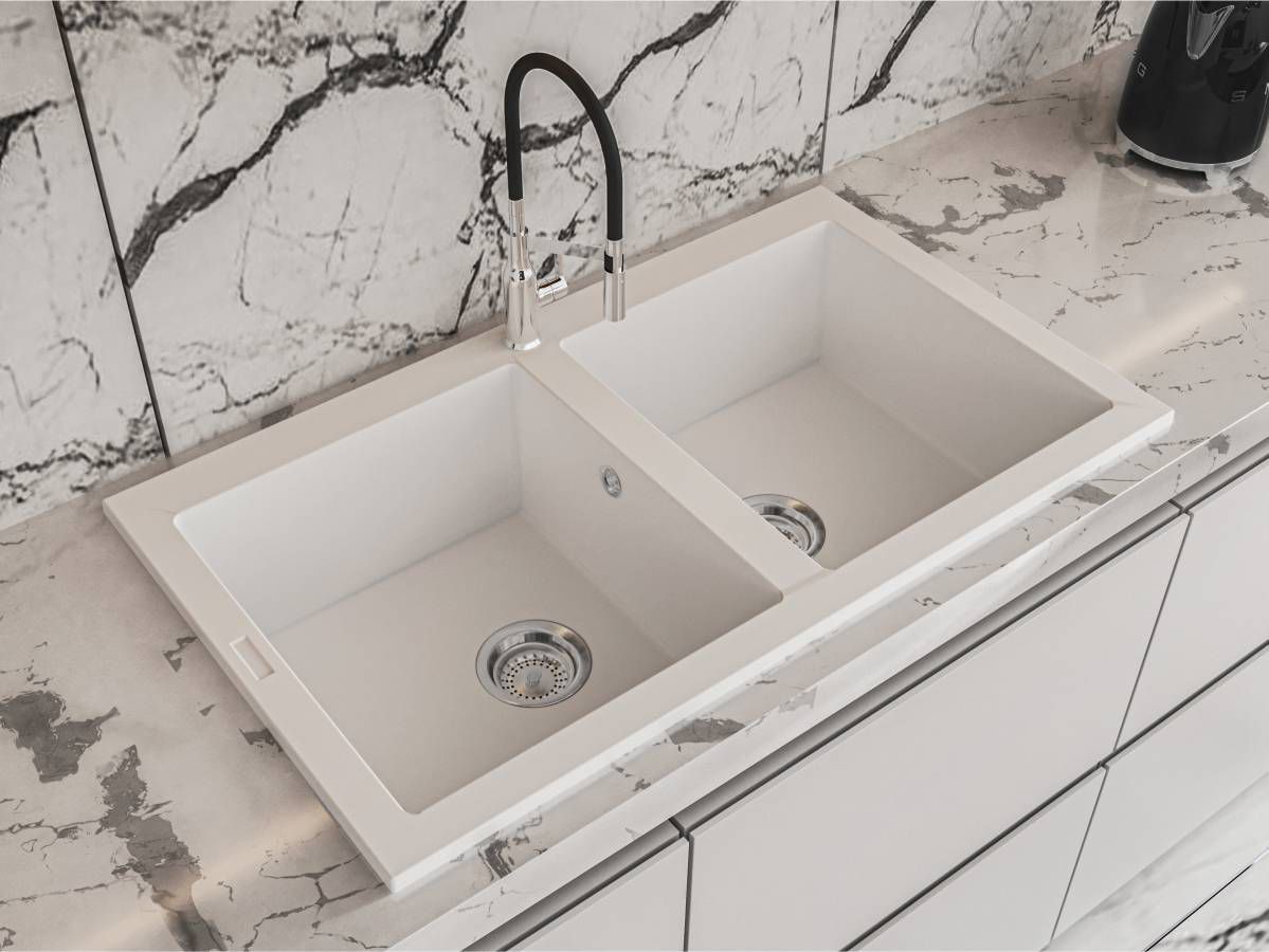 Кухонна мийка WESTEROS біла на 80% складається з кварцового піску та на 20% з поліефірної смоли, яка забезпечує міцність цього виробу. Кухонна мийка витримує перепади температур від -70 до +70 °C та не піддається впливу агресивних побутових барвників.