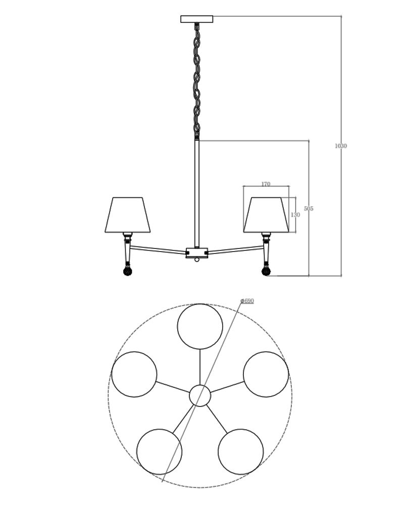 Висота світильника, мм:1030