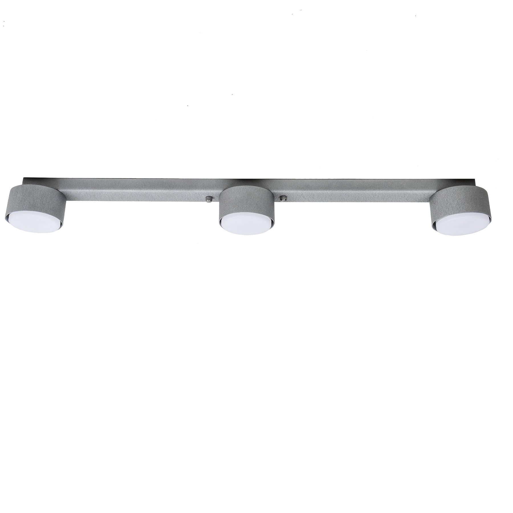 Стельовий світильник складається з трьох нерухомих плафонів на планці. Використовується новий високоефективний тип змінної ламп GX53.