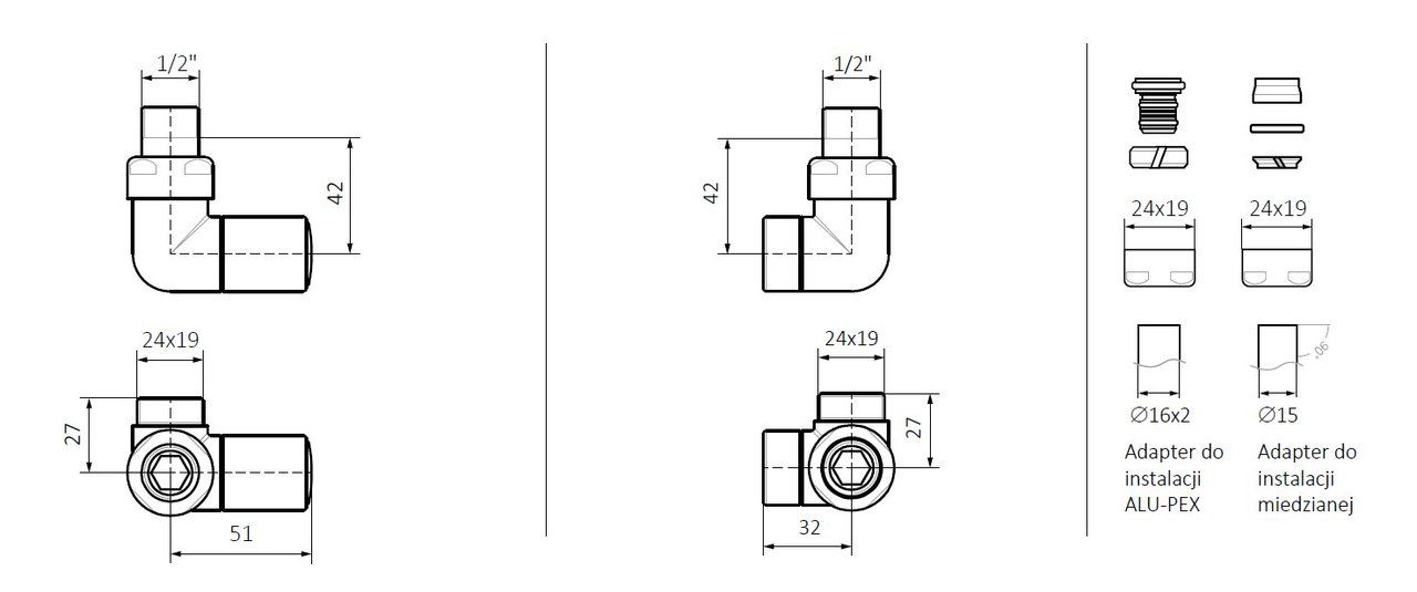 Набір вентилів трьохосьовий регулюючий правий хром Terma | WRZRC32-CR