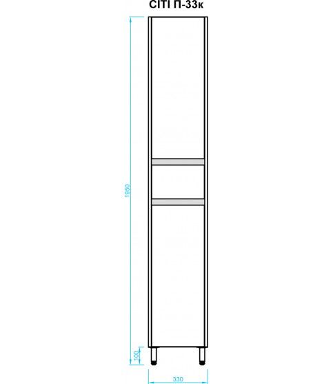 Підлоговий пенал Сіті П-33К має габарити 33 см х 35 см х 195 см.