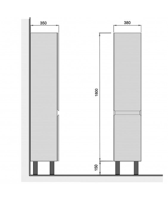 Універсальний пенал Палермо П-38К-U має габарити 38 см х 35 см х 195 см і відмінно виглядає в підлоговому і підвісного варіанті установки (для обох варіантів установки кріплення присутнє.