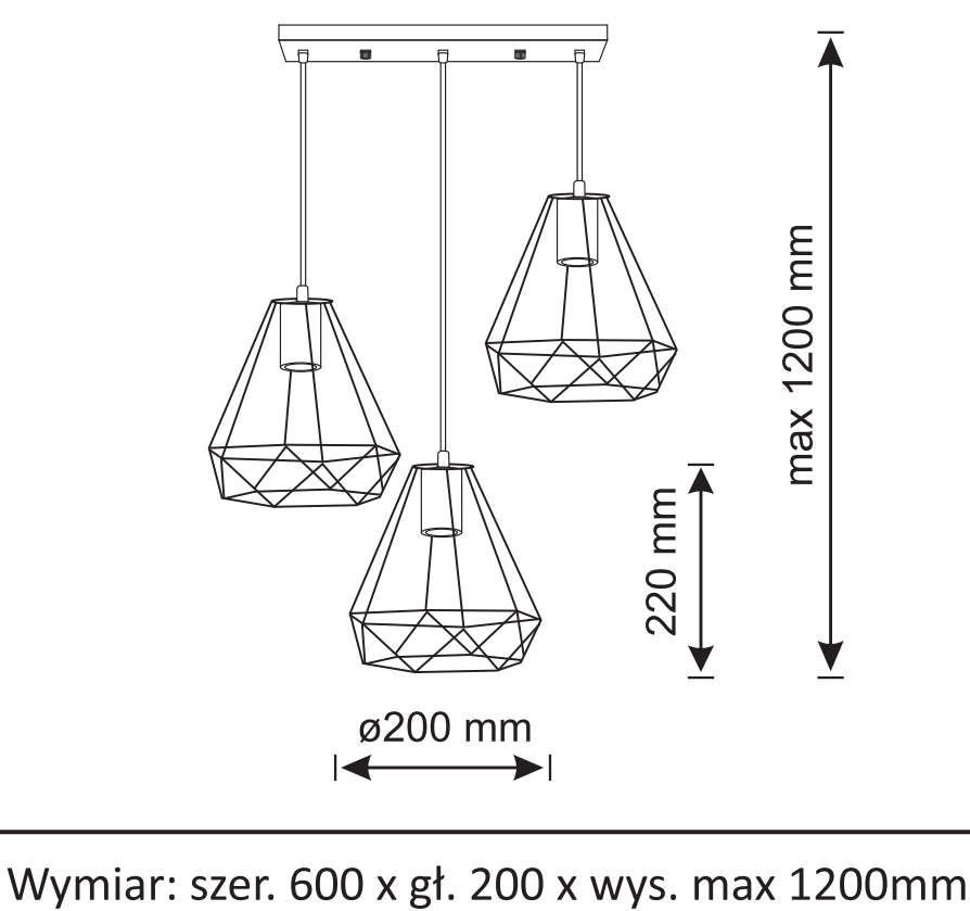Підвісний світильник Goldlux Vigo E27 3x20W IP20 BK | 314628