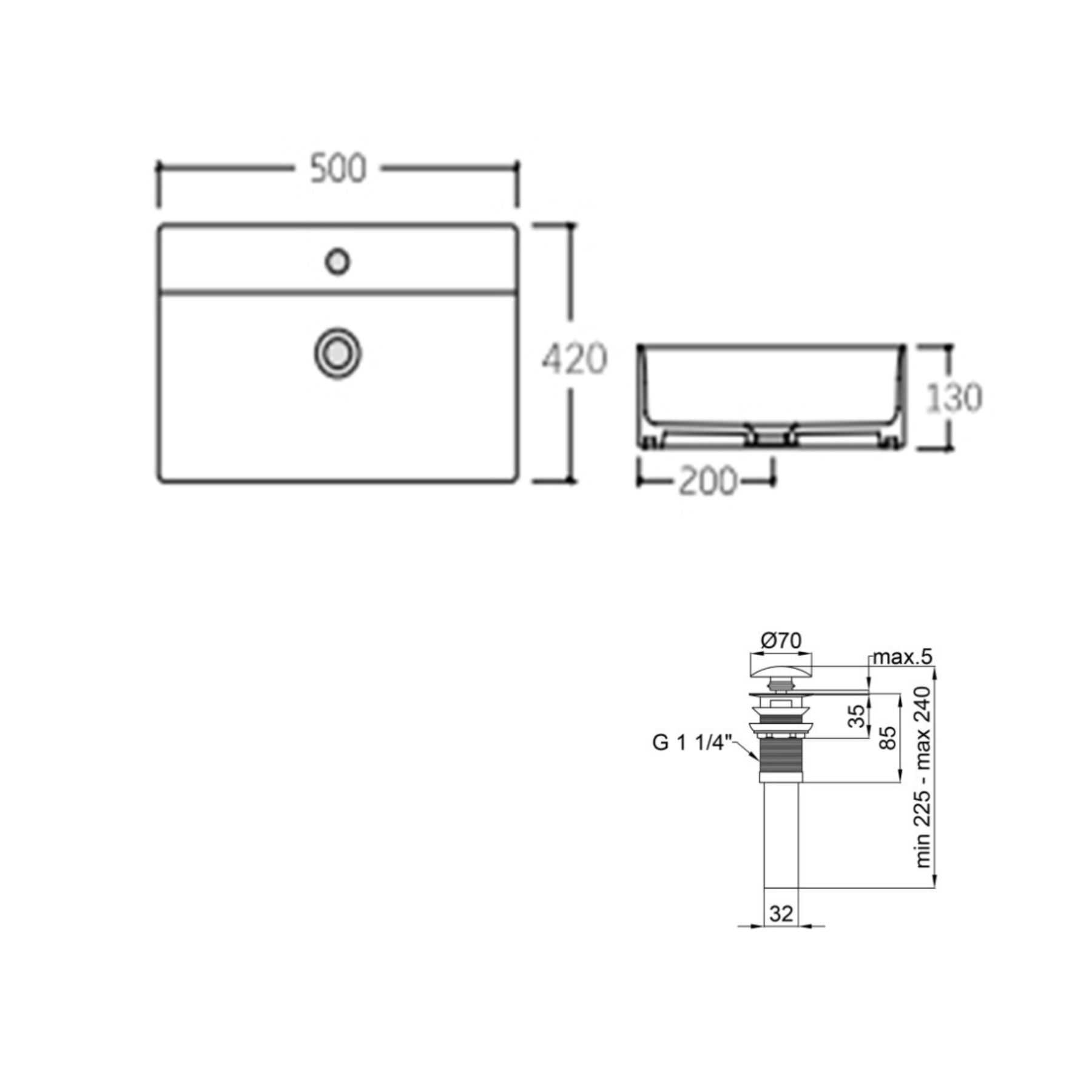 Раковина підвісна прамокутна 500х420х120 мм Matt Black + Донний клапан PU03O | SD00053446