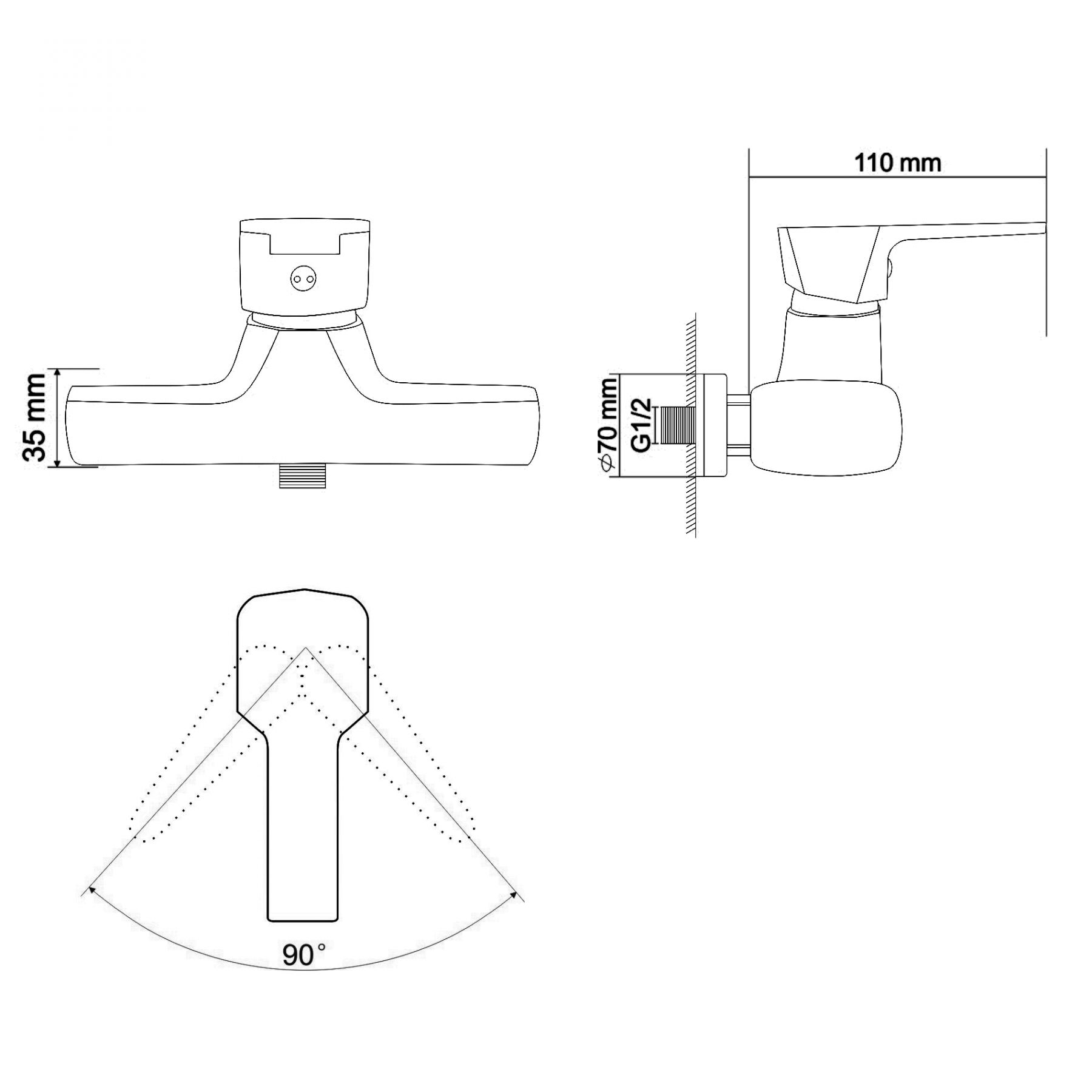 ROCK змішувач для душу одноважільний, хром 35 мм | RBZ078-5