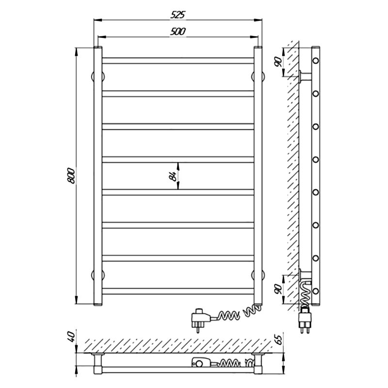 Рушникосушка АЛЬФА ЧФ8 500*800 права, біла | 77700074